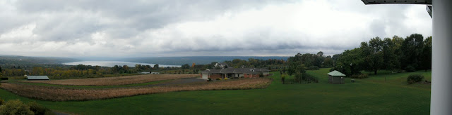 This past weekend was Ithaca's infamous Apple Harvest festival. It is a street fair that takes place on the commons and has tons of tents and stands selling apple goods, wine, jewelry, art and other cool trinkets. There are also rides and games. It is really fun for all. This year I convinced my parents to come up for the festival and they stayed at this lovely bed and breakfast up in Lansing, which is 20 minutes north of Ithaca. It was a really nice place with awesome views of Cayuga lake.